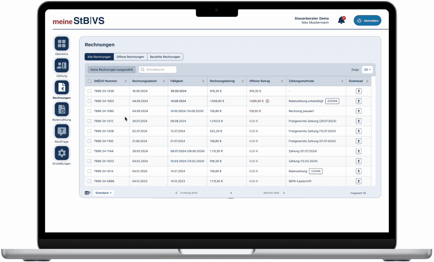 Zahlungsarten und Rechnungsstatus sind nun noch einfacher einsehbar. Die optimierte Darstellung sorgt für eine angenehme und effiziente Nutzung.